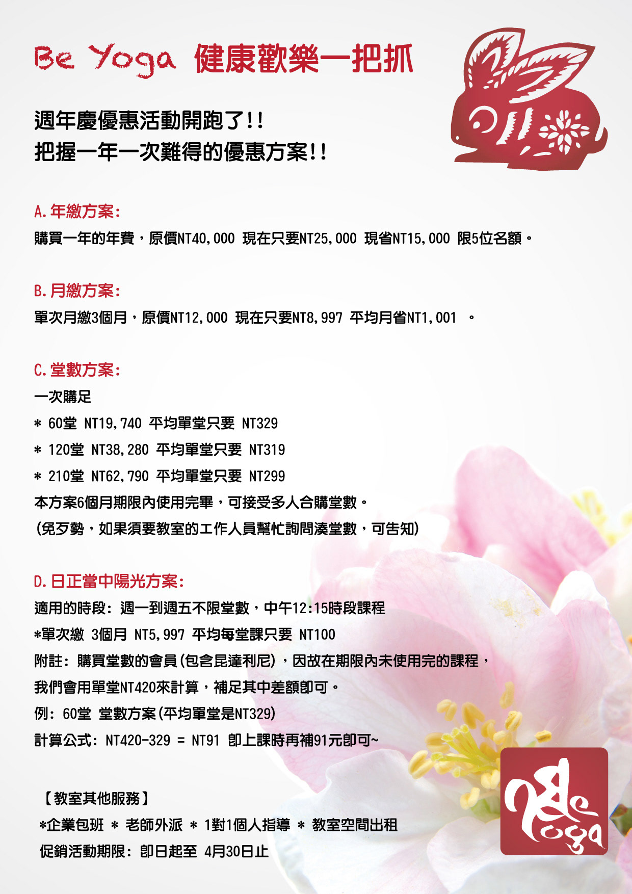 Flyers design for Be Yoga celebrating their anniversaries